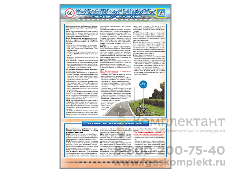 Стенд представляет собой информационную панель, на которой размещены сведения о дополнительных требованиях к движению велосипедов, мопедов, гужевых повозок, а также прогону животных.