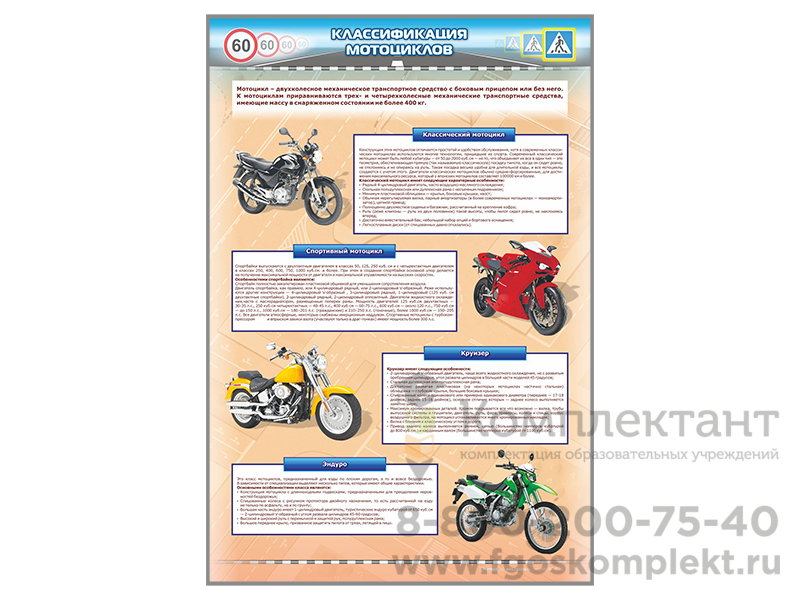 Стендс отображением информации о классификации мотоциклов.