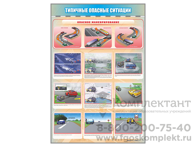 Стенд предназначен для наглядного отображения информации о мерах предосторожности при опасном маневрировании, заносе, движении в темное время суток, сложных метеоусловиях, по мокрому дорожному покрытию, а также для формирования у учащихся автошкол осознанного отношения к безопасному управлению транспортным средством.