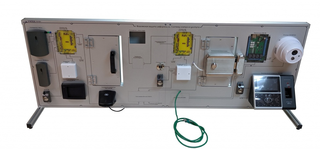 Стенд предназначен для получения базовых знаний, практических навыков и методов построения систем контроля и управления доступом (СКУД). Стенд позволяет построить СКУД с централизованным управлением на базе контактных и бесконтактных карт, технологии Touch Memory, eToken, биометрических систем, а также с использованием систем автоматического определения автомобильных номеров. В стенде моделируются ситуации использования СКУД для проходных, помещений, охранных объектах, местах проезда автотранспортах, а также для доступа к программным системам. Кроме основных задач СКУД, как ограничение доступа и идентификация личности, стенд позволяет выполнять дополнительные задачи, такие как учёт рабочего времени, ведение баз и журналов, интеграция с системой видеонаблюдения.