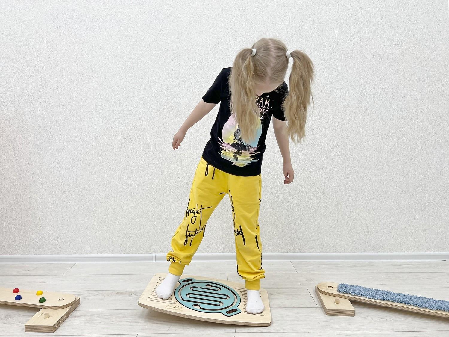 Ножной балансир платформа – игровой тренажёр, который развивает чувство равновесия и вестибулярный аппарат у малышей. Балансирование на неустойчивой платформе – это уже хорошая тренировка на ловкость и координацию движений, а если добавить балансир для рук в центральное углубление, то сложность задания и азарт только повышаются! Идёт одновременно развитие всего тела и активизация работы мозга.