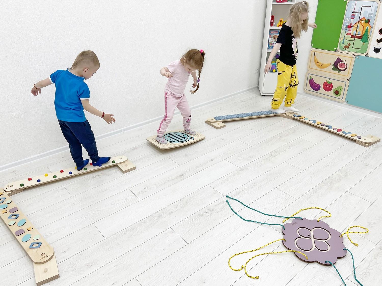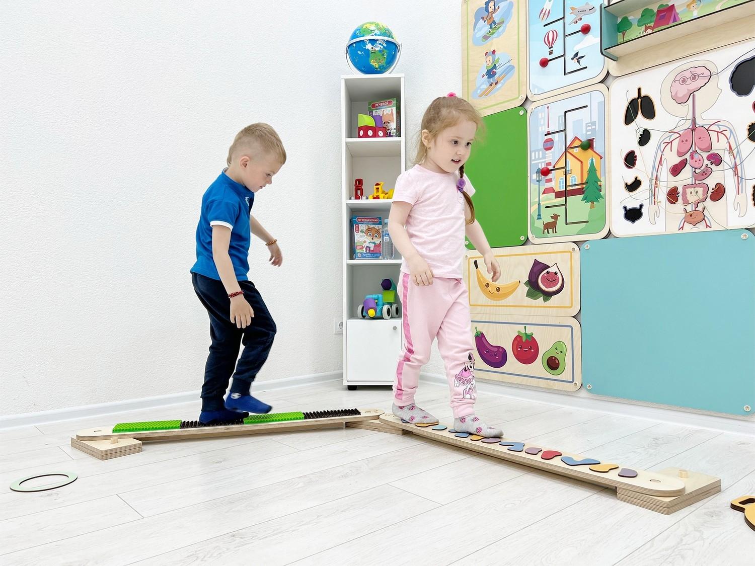 Сенсорные балансировочные мостики АЛМА – конструктор из 10 троп, 10 брусков и 2 стартовых блока, применяется для развития равновесия, координации движения, профилактики сколиоза и плоскостопия у детей. Разный рельеф и материал покрытия мостиков служит развитию сенсорной чувствительности и стимуляции рефлекторных точек на ногах.