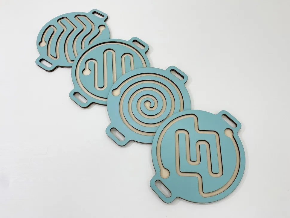 Благодаря заменяемости лабиринтов, игрушка просто универсальна! Дети могут играть отдельно с ручными лабиринтами или вставить их в балансир для ног и соревноваться в ловкости и скорости прохождения.