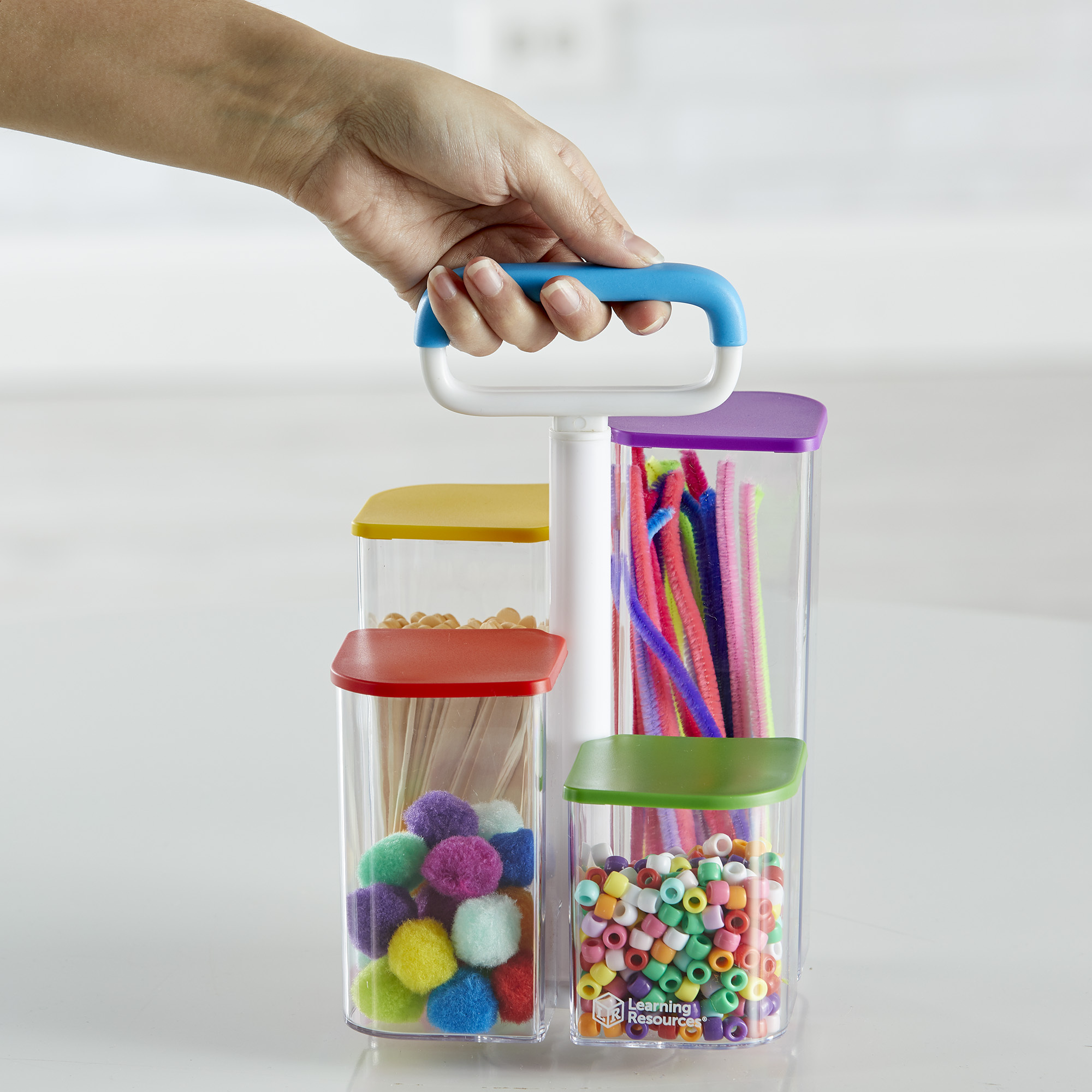 Лучший навык Органайзера Мини - наводить порядок на столе вашего ребёнка. В комплект входят 4 блока разного размера для хранения канцелярских принадлежностей и мелких деталей. Блоки можно переставлять между собой. Благодаря плотно закрывающимся крышкам на контейнерах и ручке-переноске, Мини можно смело брать с собой в школу или в путешествие - все содержимое контейнеров останется на месте.