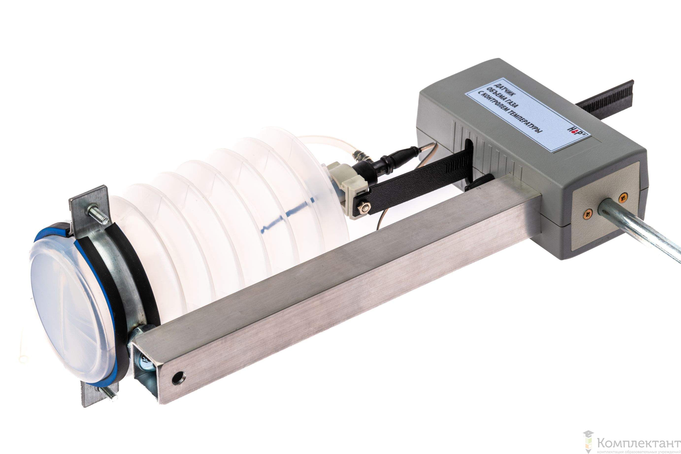 Цифровой датчик объема газа с контролем температуры предназначен для измерения изменения объема газа с одновременным контролем температуры во внутреннем объеме датчика во время проведения экспериментов на учебных занятиях.