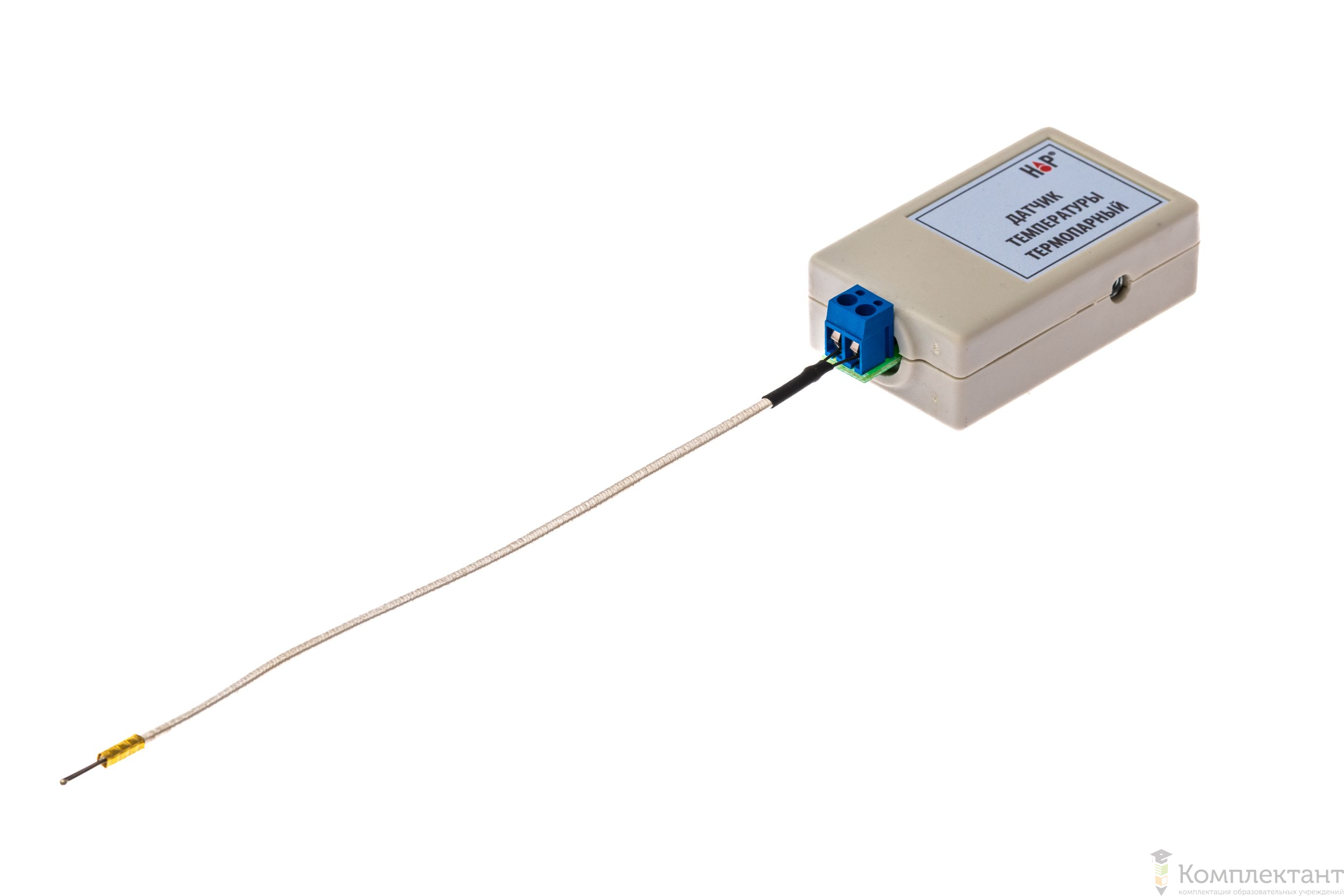 Цифровой датчик температуры термопарный выполнен на основе термопарного чувствительного элемента (термопара хромель-алюмель) без компенсации холодного спая. Чувствительный элемент (спай) расположен на конце отрезка термопарной проволоки, которая заключена в термостойкую изолирующую оболочку. Другой конец отрезка термопарой проволоки подключен к электронному блоку датчика.