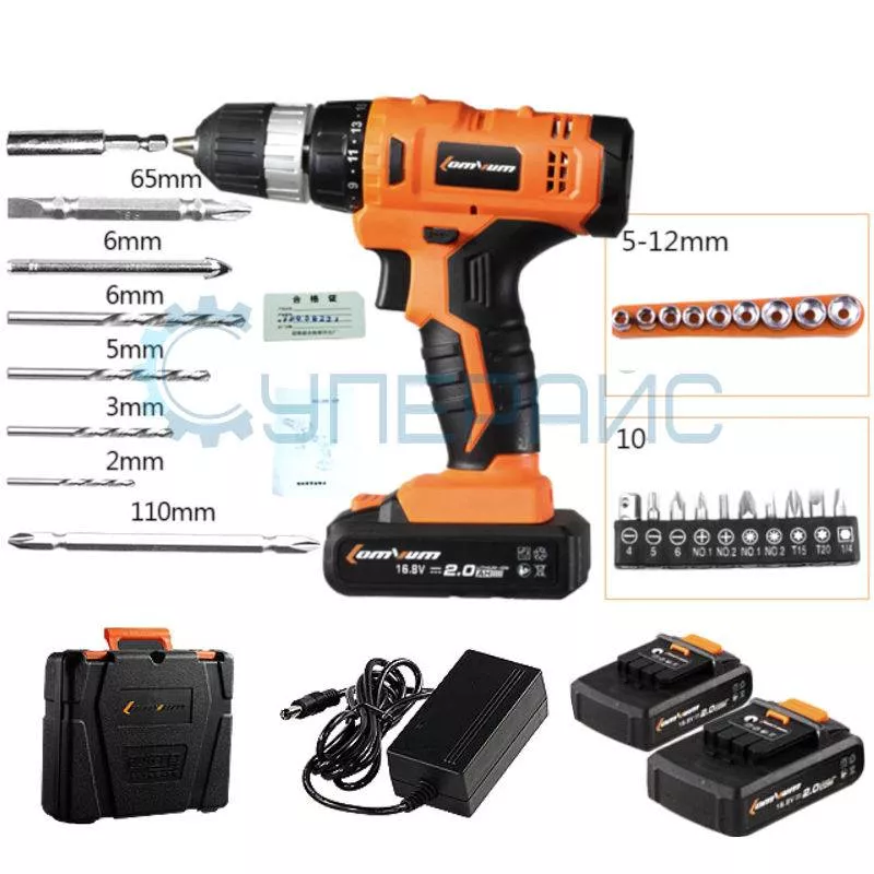 Дрель-шуруповерт Lomvum LV-108-916 с двумя аккумуляторами и кейсом