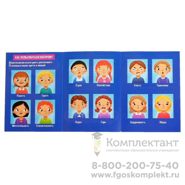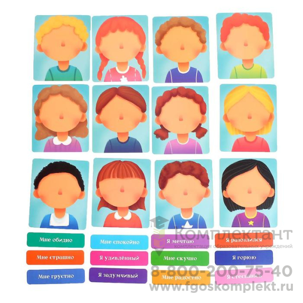 С помощью данного набора ребенок познакомится с основными эмоциональными состояниями и их мимическими проявлениями.